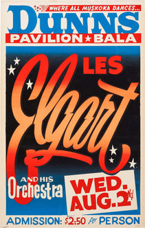 This classic, original 1961 poster was created to advertise trumpeter and swing jazz bandleader Les Elgart, performing on Wednesday August 2, 1961 at Dunn's Pavilion in Bala, Ontario.